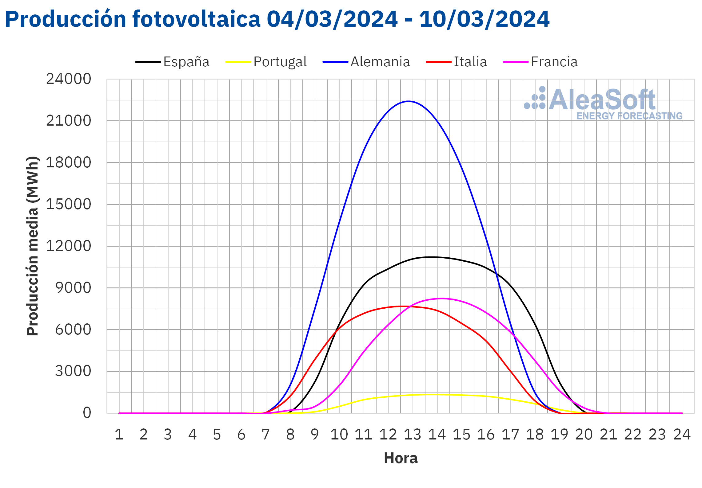 Para la semana del 11 de marzo, según las previsiones de producción solar de AleaSoft Energy Forecasting, la tendencia alcista de esta semana continuará y la producción solar aumentará en Alemania, España e Italia.