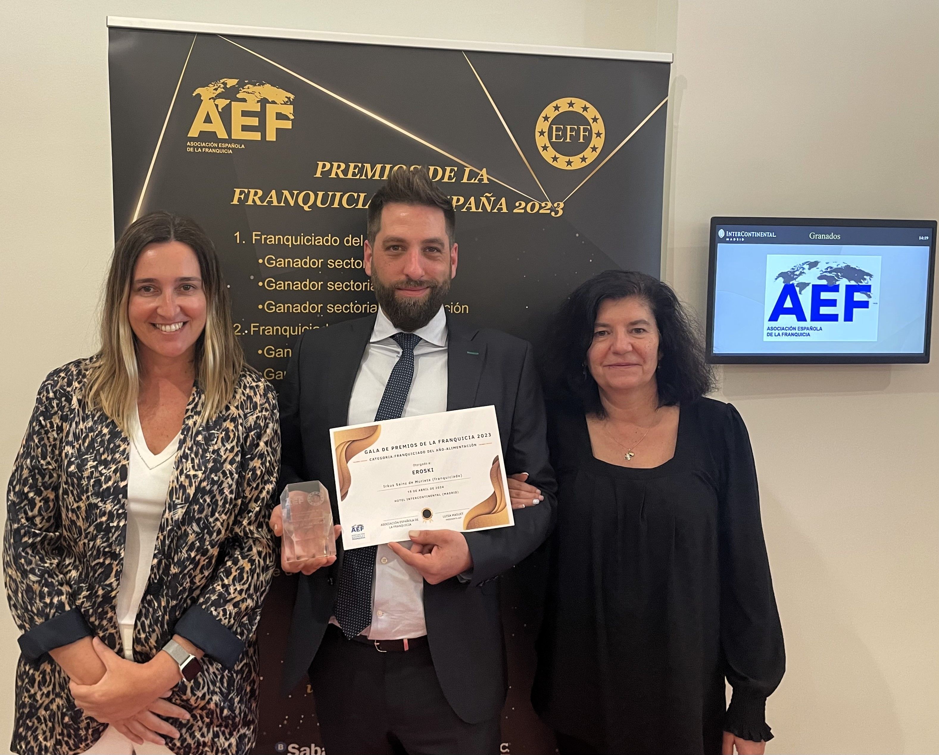 Irkus Sainz de Murieta, empresario de la localidad vizcaína de Getxo, y multifranquiciado de EROSKI Franquicias, ha ganado el «Premio al Franquiciado del Año», en la categoría de «Alimentación», otorgado por la Asociación Española de la Franquicia (AEF), en la gala que tuvo lugar el lunes 15 de abril en el Hotel InterContinental Madrid, donde se entregaron los «Premios Nacionales de la Franquicia 2023».