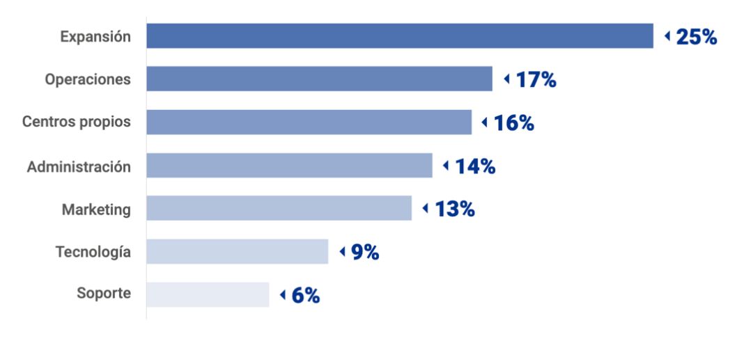 Estos datos revelan fundamentalmente dos aspectos: por un lado, el impulso en el crecimiento de las redes, que es uno de los aspectos principalmente considerados con la contratación de responsables de expansión o, en su defecto, la externalización de dichos servicios y, al mismo tiempo, el fortalecimiento de las estructuras internas con la contratación creciente de responsables de operaciones y administración. También destaca la contratación de nuevo personal para centros propios, que experimentarán un fuerte crecimiento.