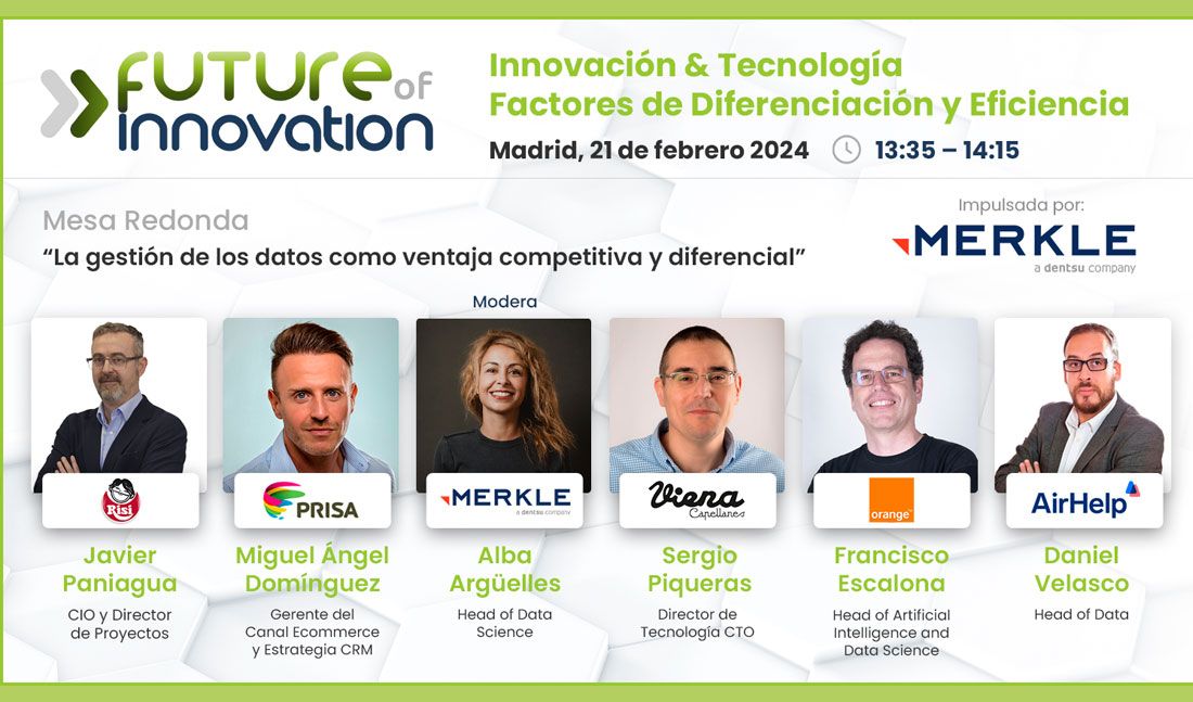La mesa de debate, impulsada por Merkle, contará con la participación de Javier Paniagua, CIO y Director de Proyectos de Risi; Miguel Ángel Domínguez, Gerente del Canal Ecommerce y Estrategia CRM de Grupo Prisa; Francisco Escalona, Head of Artificial Intelligence and Data Science de Orange Spain; Sergio Piqueras, Director de Tecnologia CTO de Viena Capellanes y Daniel Velasco, Head of Data de AirHelp, moderados por Alba Argüelles, Head of Data Science de Merkle Spain.