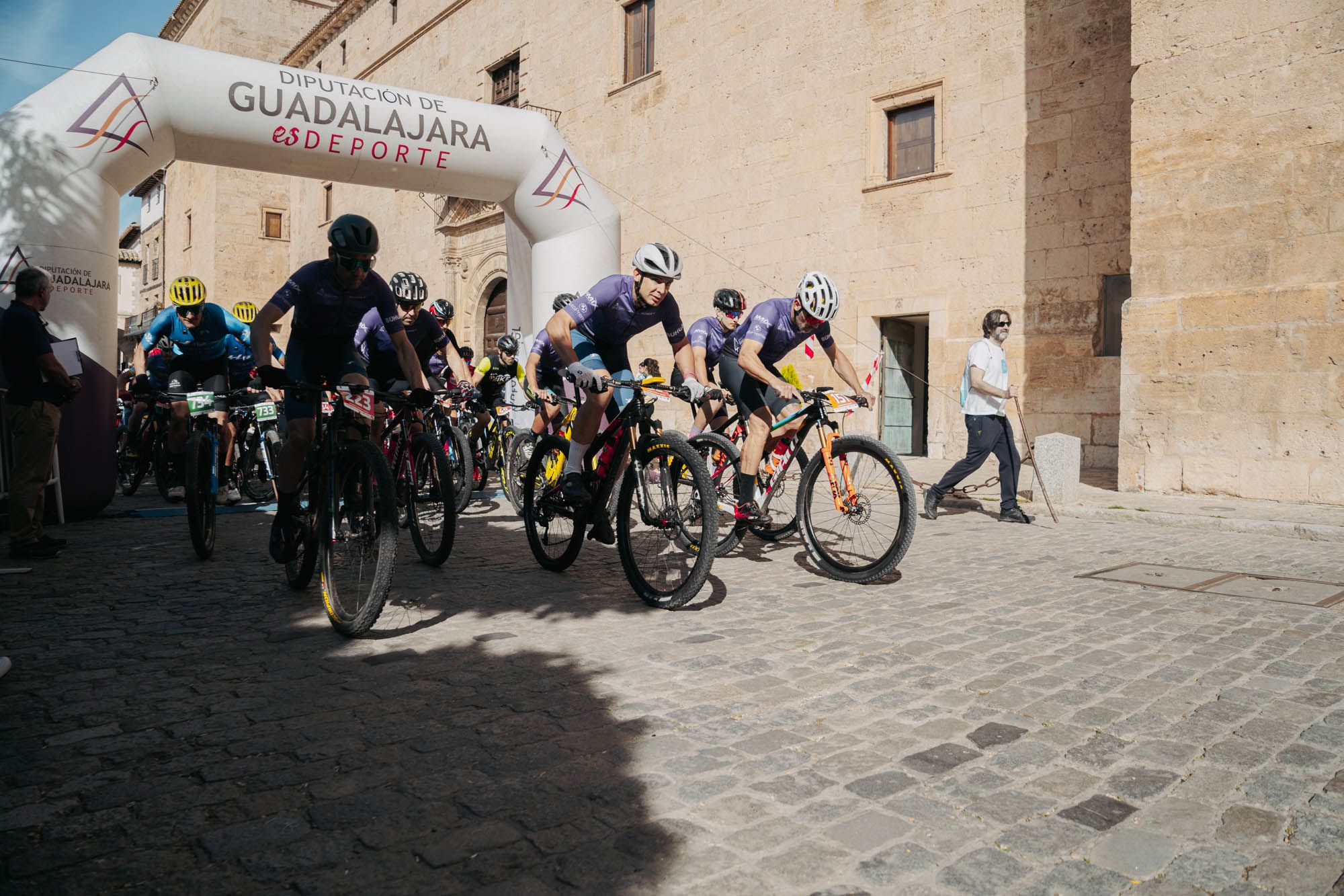 Después de la emoción de la despedida, el speaker retomaba la palabra para iniciar la cuenta atrás, a la hora indicada. La salida la dieron el alcalde de Pastrana, Carlos Largo, el director de carrera, Alejandro Gómez, el coordinador del circuito, Javier Fernández, y los concejales pastraneros Sergio Fuente y Daniel Cano. Los truenos de AC/DC acompañaban el momento de la puesta en acción de los ciclistas. El BMW eléctrico de Auto Premier encabezaba el pelotón, por la calle de la princesa de Éboli, en salida neutralizada. La organización, con el fin de desperezar rápidamente la prueba, y también para que pudiera disfrutarla el pueblo de Pastrana, propuso una primera vuelta por el pueblo, en la que subieron por primera vez  la mítica Castellana, una endiablada ascensión adoquinada por el casco histórico. Todo un emblema del ciclismo alcarreño.