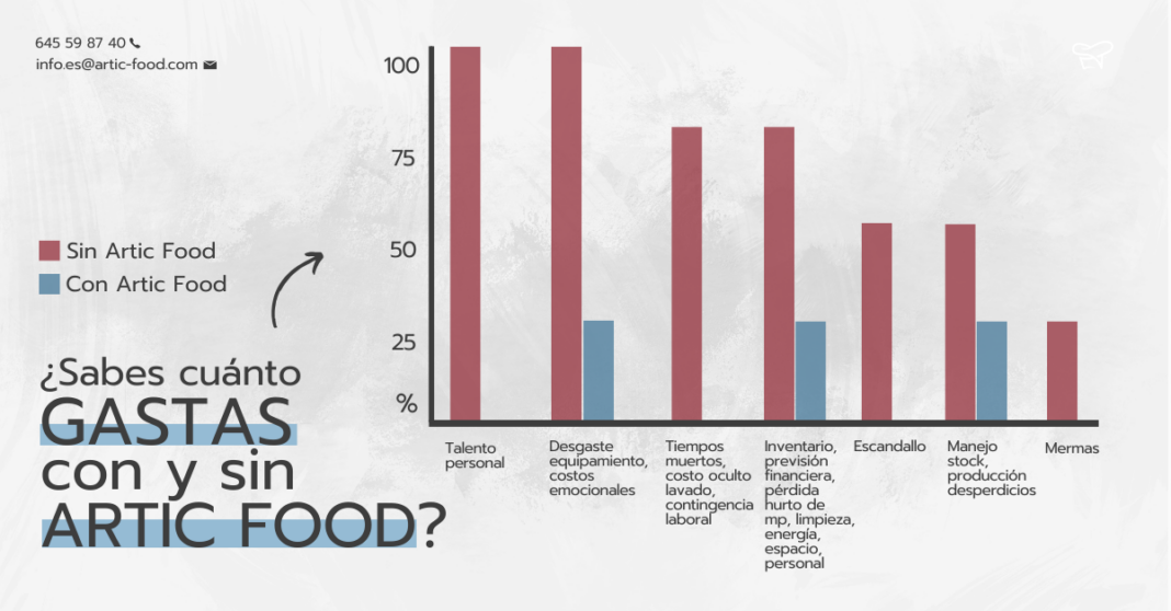 - Gastos del equipamiento y costos emocionales: 100% sin ARTIC FOOD & GOURMET vs 25% con ARTIC FOOD & GOURMET.