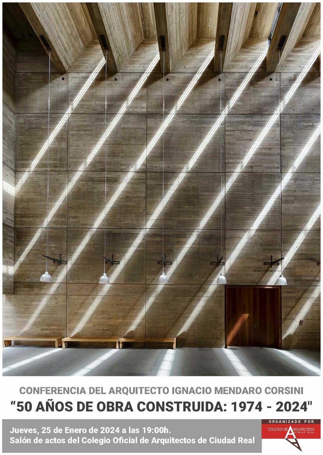 Este próximo jueves, 25 de enero, a las 19 horas, en el Salón de Actos de la Demarcación de Ciudad Real de Colegio Oficial de Arquitectos de Castilla-La Mancha (Carlos López Bustos, 3), a partir de las 19 horas, tendrá lugar la conferencia del genial arquitecto vasco Ignacio Mendaro Corsini, que lleva por título ’50 años de obra construida: 1974-2024′.